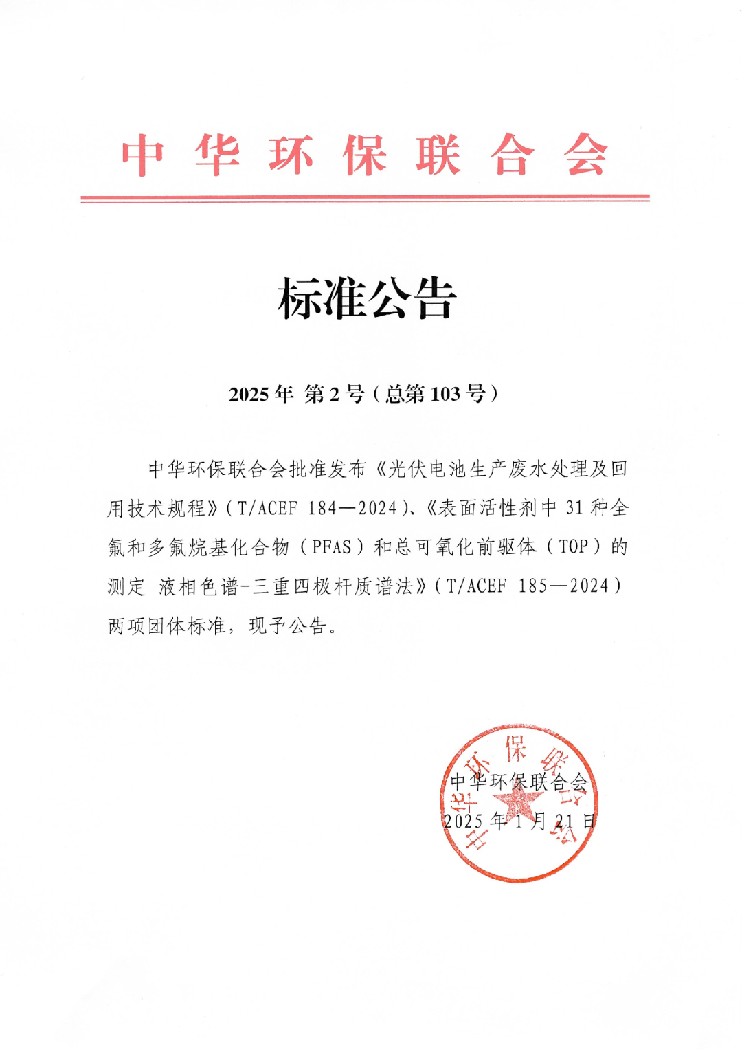 光伏電池生產(chǎn)廢水處理及回用技術(shù)規(guī)程》(T/ACEF 184-2025)