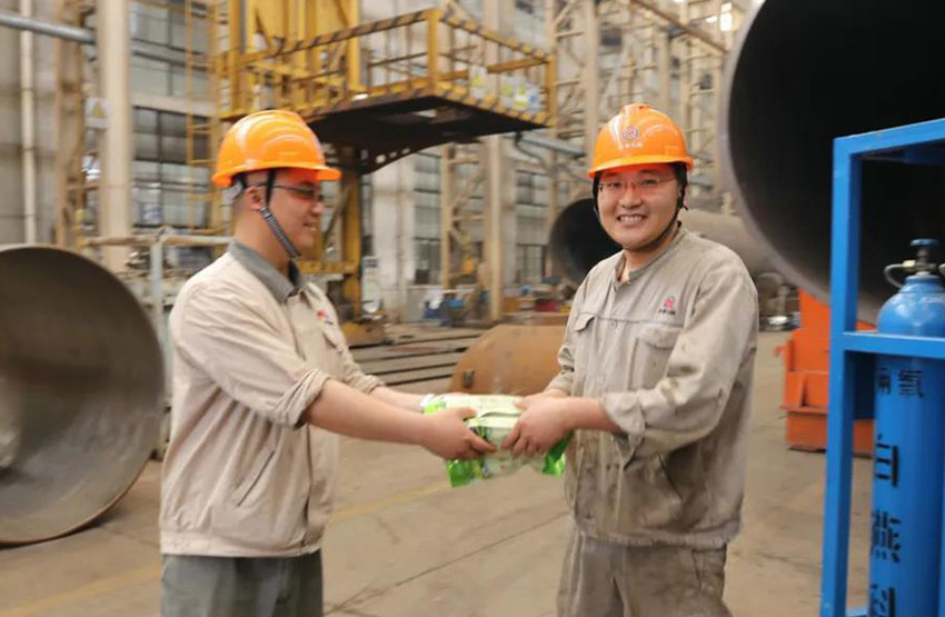 6月15日,機械公司廠長李飛、綜管部部長蔡萌代表公司領(lǐng)導來到車間一線開展“夏日送清涼”慰問活動,將一箱箱準備好的茶葉與防暑藥品送到員工手中,慰問過程中,李廠長和員工們進行了輕松愉悅的交談,叮囑大家要勞逸結(jié)合,防止高溫中暑,同時仔細詢問了他們的生產(chǎn)、生活情況,他們代表公司對不畏困難、戰(zhàn)高溫、斗酷暑,依舊奮戰(zhàn)在生產(chǎn)一線的員工表示誠摯的問候,對廣大員工為確保生產(chǎn)任務(wù)和優(yōu)異的產(chǎn)品質(zhì)量所付出的辛勤勞動表示衷心的感謝!