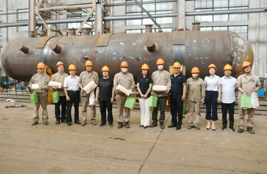 7月23日下午,臨淄區(qū)總工會副主席于宗偉、區(qū)總工會黨組成員賈鳳玲,區(qū)總工會職工服務(wù)中心主任孫能富一行來到齊魯石化機(jī)械制造有限公司看望慰問崗位的一線員工,并贈送了防暑降溫品。